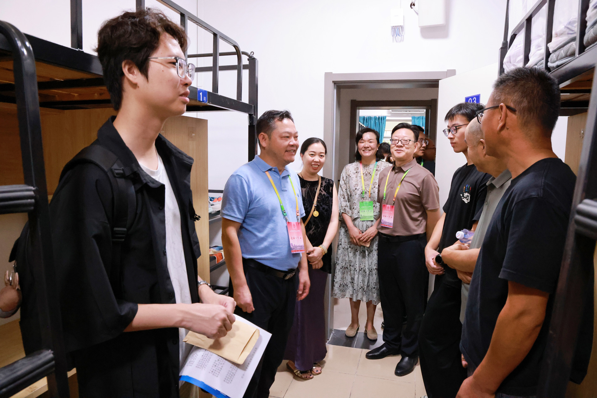 迎新期间,院领导走进食堂、宿舍,与新生及家长亲切交谈。一位新生家长举起大拇指感动地说:“从踏入校门的那一刻起,就能感受到学校的用心与专业。老师和志愿者们全程耐心引导,还特别照顾我们远道而来的家长,把孩子交给这样的学校,我们特别放心!”在学生宿舍,院长孙永荣与同学们亲切交流,关切询问对校园环境、住宿条件的适应情况,认真倾听大家的学业规划。他以学院杰出校友、“大国工匠”顾春燕扎根行业、精益求精的奋斗故事为例,勉励新生珍惜宝贵的大学时光,树立远大理想,锤炼过硬本领,在奋斗中实现人生价值。