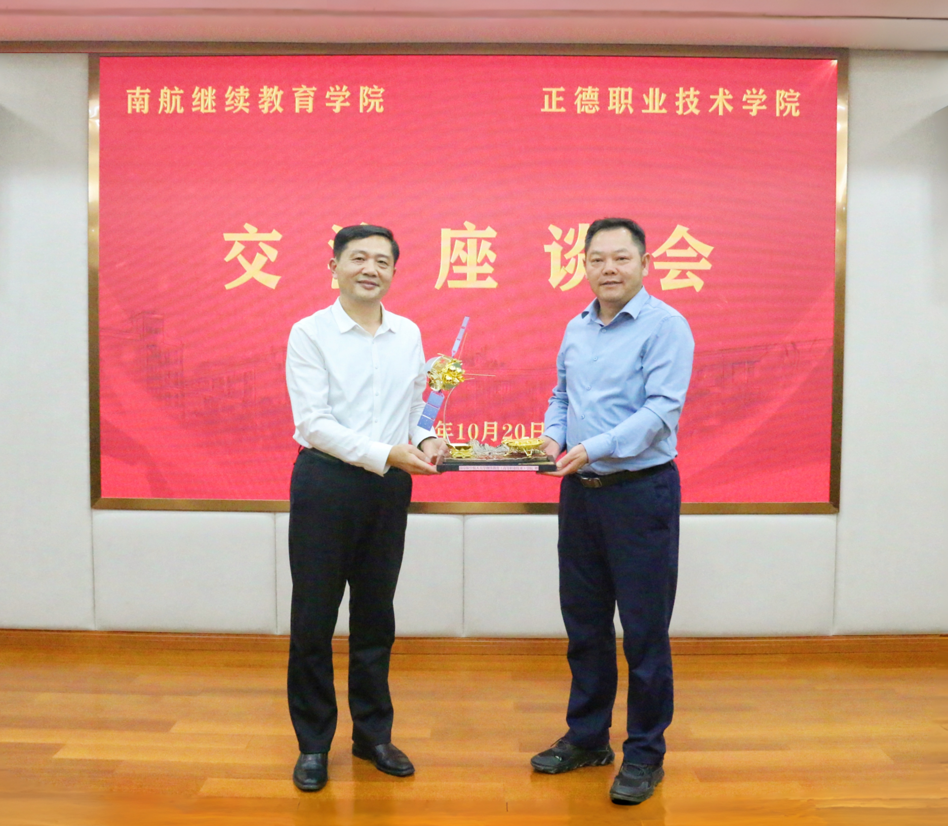 座谈结束后,江爱华代表南航继教院向我院赠送“天问一号”模型,象征双方携手探索创新发展之路。随后,在院领导陪同下,南航继教院领导参观了我院大国工匠工作室、“正德—大华”无人机综合实训中心、科沃斯检测实训中心,详细了解学院实训教学与产教融合成果。